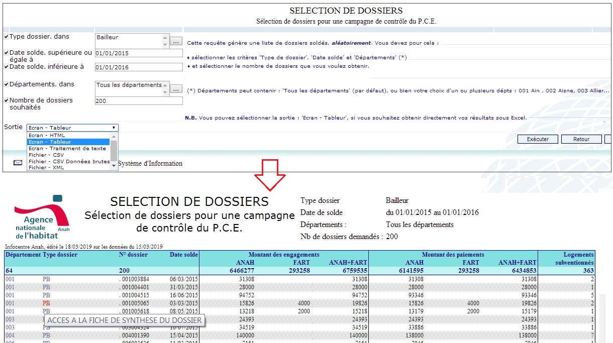 | AIDE UTILISATEURS | SELECTION DE DOSSIERS POUR UNE CAMPAGNE DE CONTRÔLE DU P.C.E. |